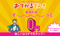 【おてがるでんき】は、電気の基本料金が永年0円の新電力サービスです!ご契約にあたり、切替費用や解約費用等は一切かかりません。電気の品質・安定供給は今までと変わらず、安定した電力がご利用いただけます。