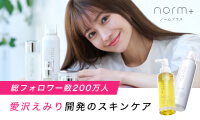 norm+(ノームプラス)は、【総フォロワー200万人以上】のインフルエンサーとして活躍するキャバ嬢社長、愛沢えみりが美容クリニックと共同開発したスキンケアブランドです。